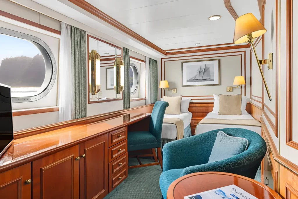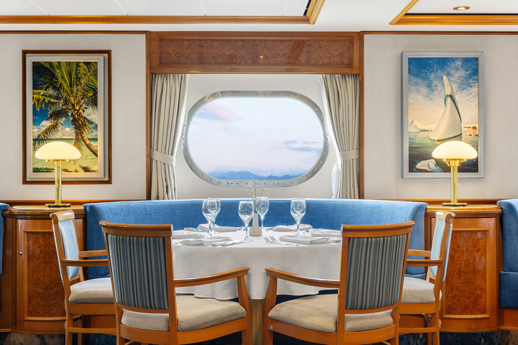 On board, panoramic lounges, a cosy observation deck, and a heated outdoor bar provide sweeping views of glaciers, icebergs, and passing wildlife. Each evening, guests gather for engaging recaps with the expedition team, deepening the connection to this extraordinary environment.